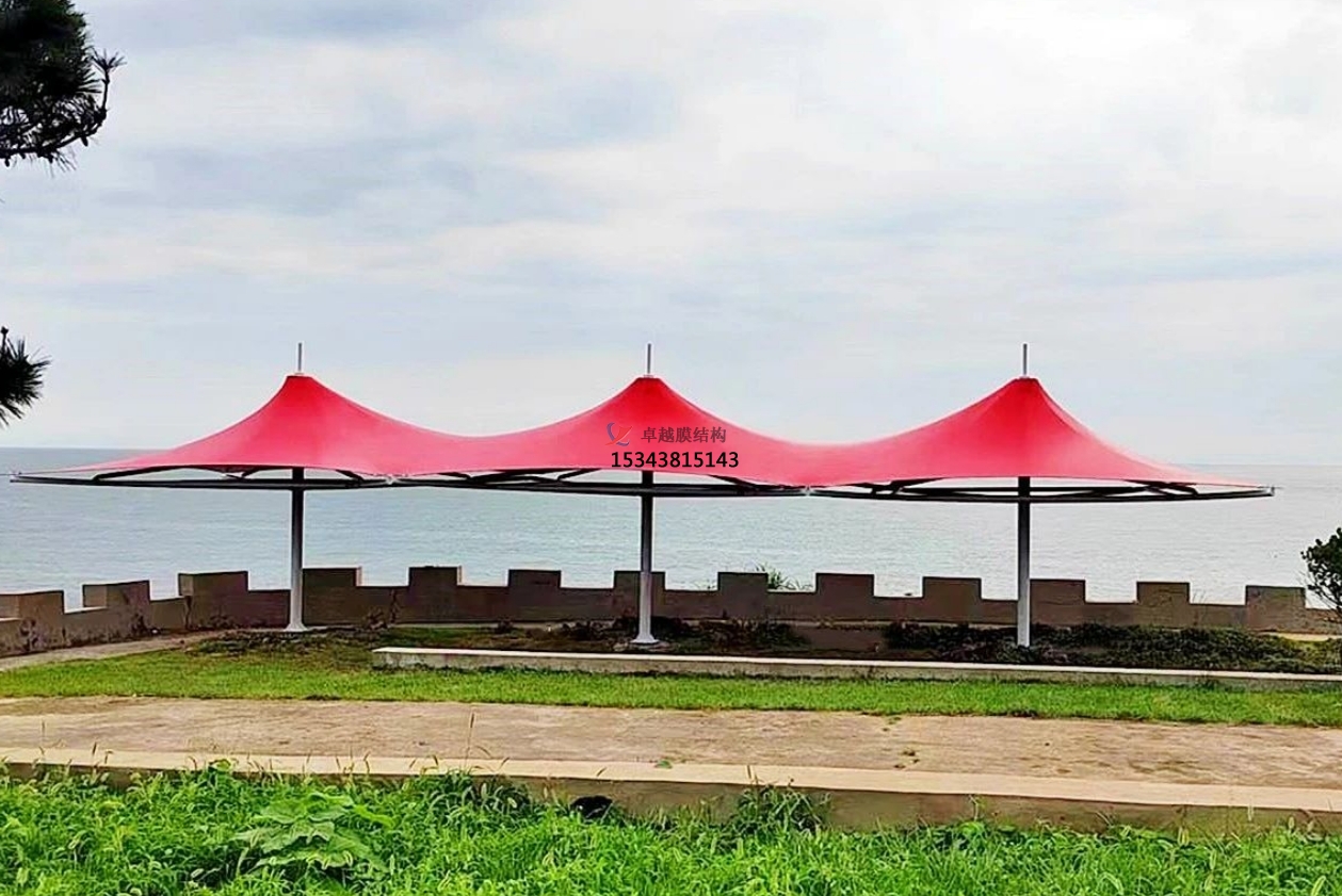 從設(shè)計(jì)角度來(lái)看,景觀膜結(jié)構(gòu)有著無(wú)與倫比的優(yōu)勢(shì)。其形態(tài)具有多樣性,能夠根據(jù)不同的場(chǎng)地條件、功能需求以及審美偏好,設(shè)計(jì)出千變?nèi)f化的造型。在城市公園中,常常能看到造型如靈動(dòng)飛鳥(niǎo)的膜結(jié)構(gòu)亭子,其流暢的曲線與公園的自然環(huán)境相得益彰,為游客提供了別具一格的休憩空間;在商業(yè)廣場(chǎng),可能會(huì)有巨大的穹頂式膜結(jié)構(gòu),以其宏大的規(guī)模和獨(dú)特的造型吸引人們的目光,成為廣場(chǎng)的標(biāo)志性建筑。而且,景觀膜結(jié)構(gòu)對(duì)環(huán)境有著良好的適應(yīng)性,無(wú)論是自然風(fēng)光旖旎的景區(qū),還是高樓林立的城市街區(qū),它都能巧妙融入,通過(guò)合理的設(shè)計(jì),不僅不會(huì)顯得突兀,反而能為周邊環(huán)境增添獨(dú)特的韻味,成為新的景觀焦點(diǎn)。
