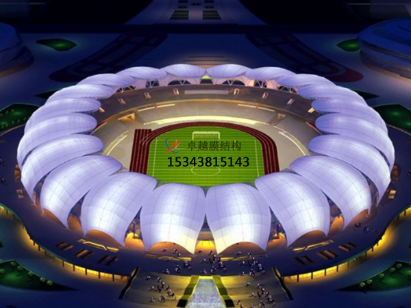 膜結(jié)構(gòu)體育場(chǎng)館的優(yōu)勢(shì):膜結(jié)構(gòu)體育場(chǎng)館優(yōu)勢(shì)很多,其中就包含建筑造型優(yōu)美、空間利用率高、可透光性與采光、節(jié)能環(huán)保、施工周期短、經(jīng)濟(jì)性等。膜結(jié)構(gòu)能塑造出自由、輕巧、柔美的造型,如曲面、穹頂?shù)?,為體育場(chǎng)館帶來獨(dú)特的視覺效果,使其成為城市的標(biāo)志性建筑。還可以創(chuàng)造巨大的無遮擋可視空間,無需內(nèi)部支撐柱,能更好地滿足體育賽事和觀眾觀賽的需求,提高空間利用率。膜材具有良好的透光性,可使場(chǎng)館內(nèi)部獲得充足的自然采光,減少白天對(duì)人工照明的依賴,降低能源消耗,同時(shí)營(yíng)造出舒適的室內(nèi)光環(huán)境。膜結(jié)構(gòu)具有優(yōu)異的保溫隔熱性能,能有效降低場(chǎng)館的能耗,此外,膜材可回收利用,符合綠色環(huán)保理念,降低對(duì)環(huán)境的影響。相比傳統(tǒng)的混凝土結(jié)構(gòu)或鋼結(jié)構(gòu)體育場(chǎng)館,膜結(jié)構(gòu)體育場(chǎng)館的施工速度更快,安裝便捷,可在較短時(shí)間內(nèi)完成建設(shè)。由于膜結(jié)構(gòu)自重輕,基礎(chǔ)和支撐結(jié)構(gòu)相對(duì)簡(jiǎn)單,可降低建筑成本,同時(shí),其維護(hù)成本也較低。