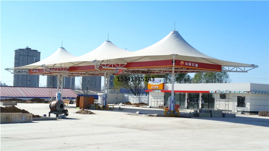 拉伸強(qiáng)度,也就是抵抗荷載作用的能力,必須要足夠高才可以。通常PVC涂覆聚酯長絲和PTFE涂覆玻璃纖維材料的拉伸強(qiáng)度都可以做到10噸力/米以上。模量越高,膜材就越容易被裁剪定型和進(jìn)行預(yù)張拉。聚酯長絲的織物具有中等的模量,容易被使用,它的延伸率從結(jié)構(gòu)邊界點(diǎn)定位來說不是一個(gè)問題,除非大量的雪荷載作用其上。玻璃纖維的織物具有很高的模量,膜結(jié)構(gòu)收費(fèi)站,如果膜材與結(jié)構(gòu)的尺寸不吻合,膜材的張拉(或安裝)曲率發(fā)生變化將是非常危險(xiǎn)的事情。