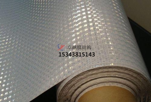 以無堿玻璃纖維織物為基材浸漬聚四氟乙烯后制成的玻璃纖維涂塑布,用于建筑物或構(gòu)筑物。