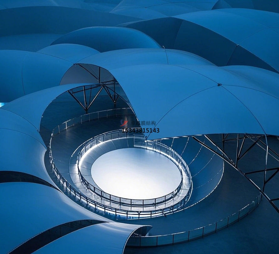 形狀多樣性:膜結(jié)構(gòu)憑借其柔性資料的特性,可以完成自由空間曲面的規(guī)劃,造型豐厚多樣。從簡(jiǎn)練流通的單曲面到復(fù)雜多變的多曲面,從高雅的弧形到賦有張力的異形,膜結(jié)構(gòu)舞臺(tái)可以依據(jù)扮演主題、場(chǎng)所環(huán)境以及規(guī)劃師的創(chuàng)意,塑造出千變?nèi)f化的形狀。如在一場(chǎng)以 “天然之舞” 為主題的舞蹈扮演中,舞臺(tái)膜結(jié)構(gòu)規(guī)劃成了一片隨風(fēng)飄動(dòng)的樹(shù)葉形狀,膜材的輕柔質(zhì)感與樹(shù)葉的靈動(dòng)形狀完美結(jié)合,為舞蹈藝人們打造了一個(gè)充溢天然氣味的扮演空間,讓觀眾似乎置身于森林之中,增強(qiáng)了扮演的沉溺感與藝術(shù)感染力。