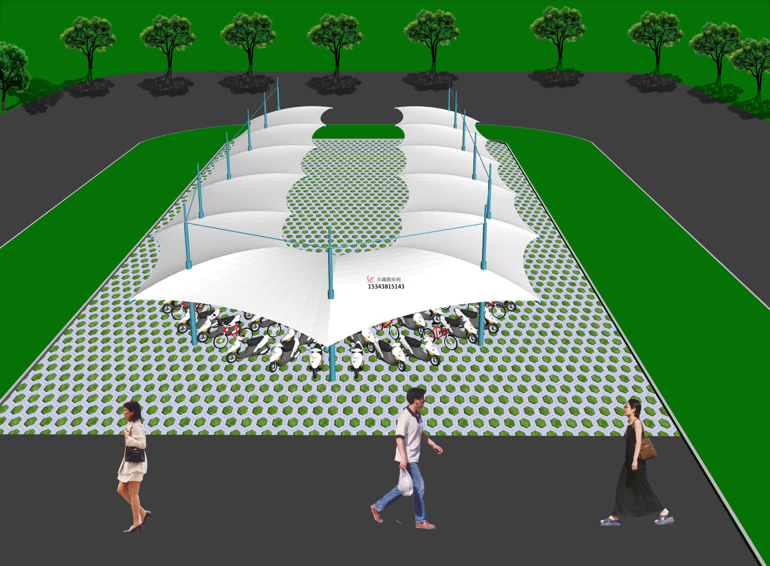 結(jié)構(gòu)形式:骨架式張拉膜充電樁車(chē)棚