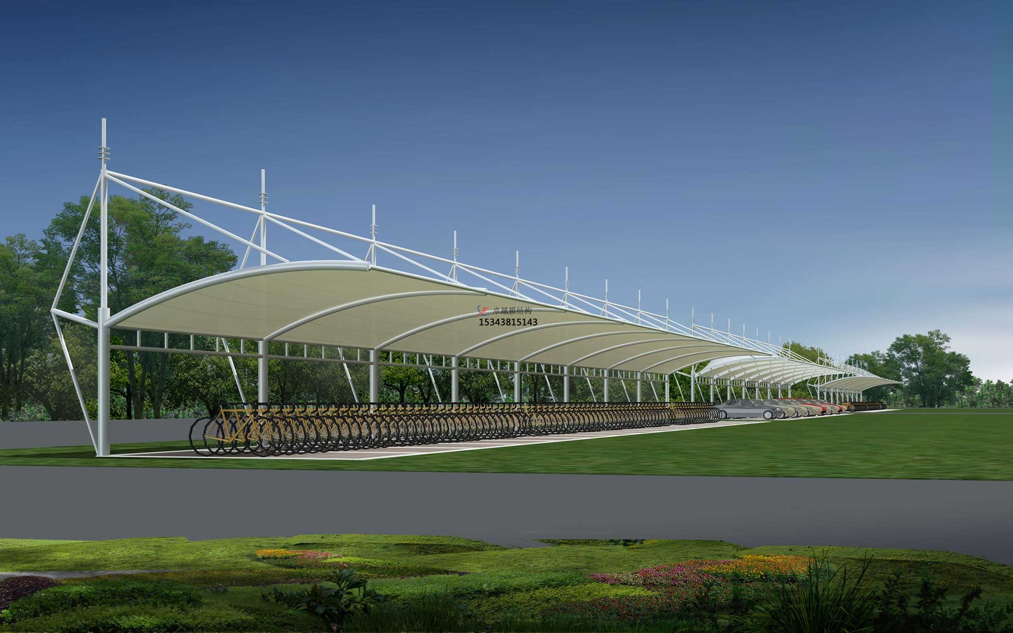 結(jié)構(gòu)形式:骨架式張拉膜車(chē)棚