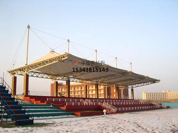 膜結(jié)構(gòu)景觀的篷布材料是膜結(jié)構(gòu),膜結(jié)構(gòu)材料的特點(diǎn)就是強(qiáng)度高、耐久性好、防火難燃,自潔性好,不會(huì)受到紫外線的影響,使用壽命長,透光率好,熱量吸收量也很少。