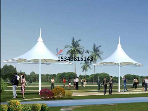 2、預(yù)應(yīng)力施加間隔每次施加預(yù)應(yīng)力間隔24h。第2,3次施加了預(yù)應(yīng)力之時(shí),各處工作點(diǎn)位的人員時(shí)刻觀察膜面的張緊度,遇有應(yīng)力集中的狀況時(shí),應(yīng)當(dāng)及時(shí)進(jìn)行調(diào)整,規(guī)避膜面破壞。張拉完景觀膜結(jié)構(gòu)遮陽棚的膜單元后,再安裝焊接蓋口膜。