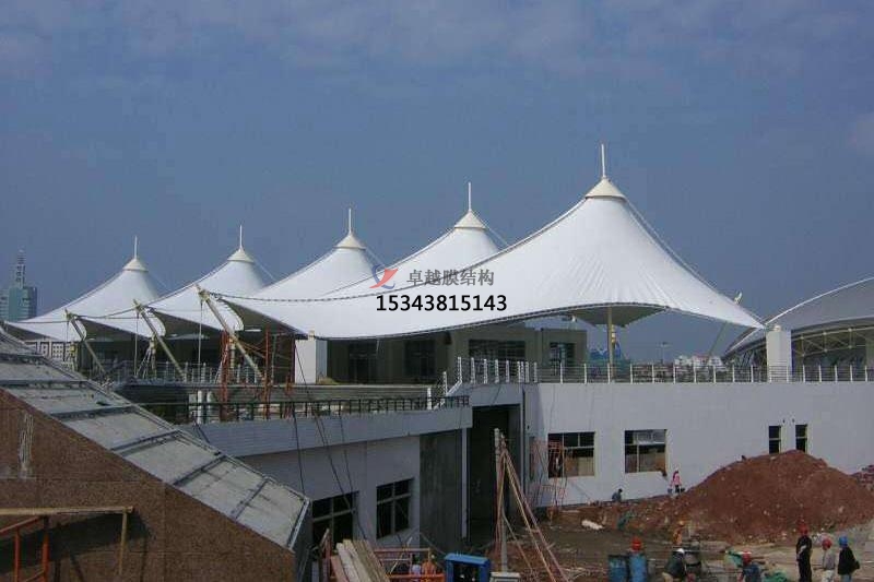 膜結構建筑是用輕質(zhì)高強度柔性薄膜材料與支撐體系相結合形成的具有一定剛度的穩(wěn)定曲面、可承受一定荷載、能夠覆蓋大空間的結構形式。由于充分發(fā)揮了材料抗拉強度高的特性,使得膜結構建筑具有以下優(yōu)點: