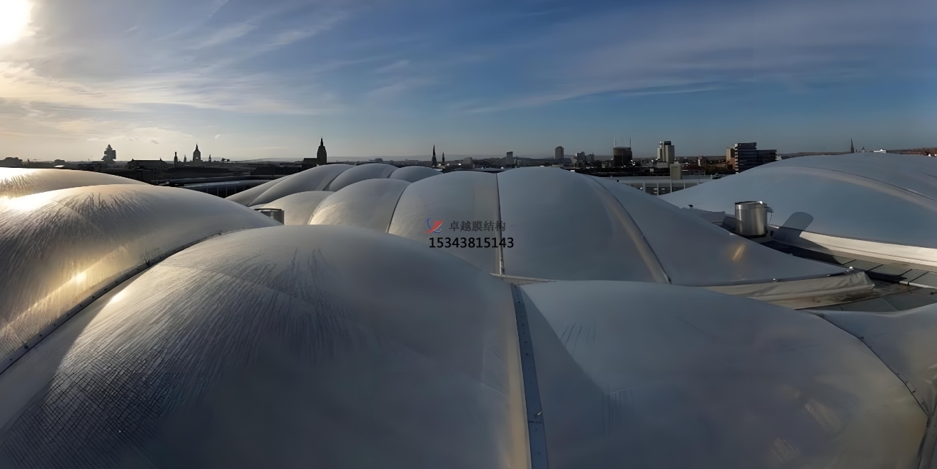 首先區(qū)分ETFE膜結構使用的是膜材厚度。建筑用ETFE膜常規(guī)的有100μm、150μm、200μm、250μm、300μm厚,最厚的有500μm。