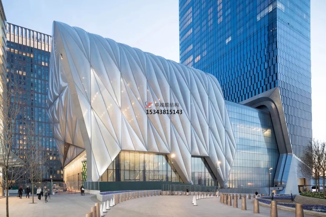 在哈德遜碼頭上,全新的跨界“棚屋”藝術(shù)中心(The Shed)于2019年4月5日對(duì)外開放。藝術(shù)中心由著名建筑公司 Diller Scofidio+Renfro 和 Rockwell 集團(tuán)合作設(shè)計(jì),打造了覆蓋著ETFE氣枕膜材料的120英尺的伸縮式外殼,能夠通過滾輪將建筑延伸至“棚屋”的戶外廣場(chǎng),營(yíng)造更開闊的半戶外空間,旨在創(chuàng)建世界上最具靈活性的文化機(jī)構(gòu)。