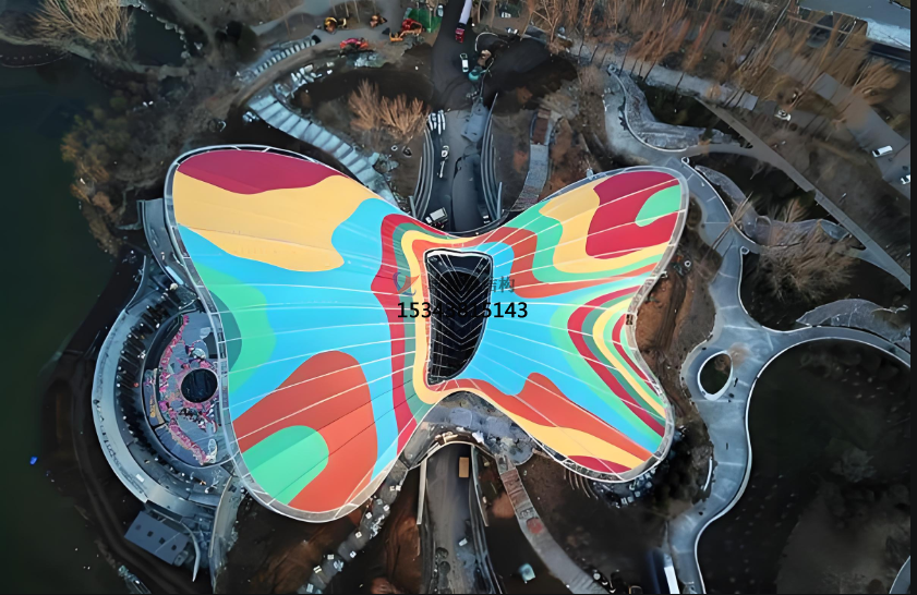 ETFE膜材除了常規(guī)的透明、藍(lán)色、白色、銀色鍍點(diǎn)外,其實(shí)還有五顏六色的彩色系列。今天就給大家介紹一個(gè)ETFE彩色膜應(yīng)用的經(jīng)典案例2019年北京世園會(huì)的主場館——媯汭劇場,外觀為彩色蝴蝶造型。