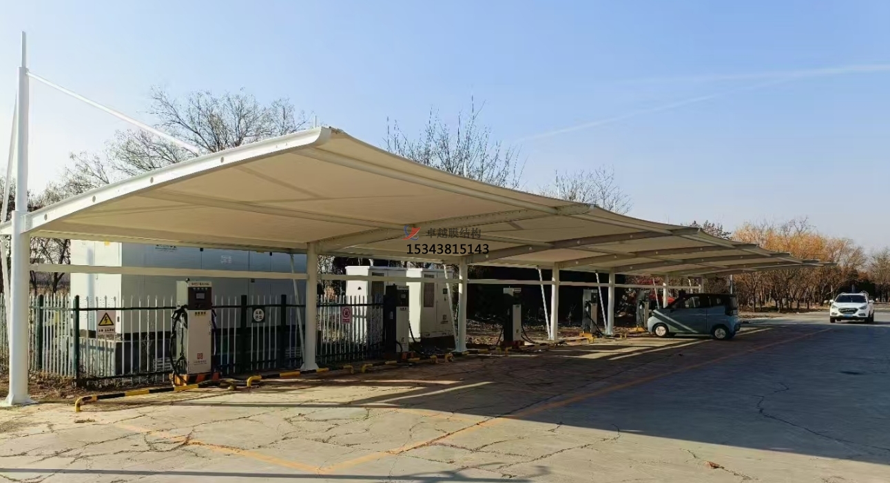 美觀大方:膜材料具有良好的透光性和折射性,使得車棚在外觀上更加美觀大方,能夠與周圍環(huán)境協(xié)調(diào)融合。