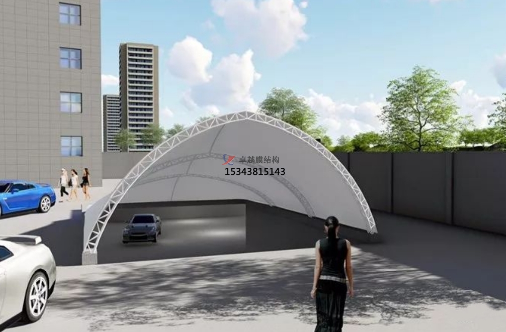 3、施工迅速,經(jīng)濟性好:地下車庫出入口膜結(jié)構(gòu)中使用的膜材、鋼材都是在工廠內(nèi)加工,然后運送到現(xiàn)場進行安裝,這就大大減少了現(xiàn)場的施工時間,便于規(guī)?;a(chǎn),縮短項目工期,減少了工資支出。膜材自重較輕,加上采用鋼索,鋼結(jié)構(gòu)等簡單框架支撐,大大減少了鋼構(gòu)等材料的使用,從而降低工程造價,經(jīng)濟性好;