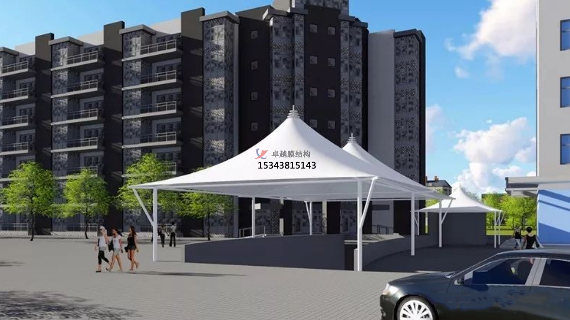 4、坡道雨棚材料選擇廣:關(guān)于雨棚篷布材料,有多種膜結(jié)構(gòu)材料可以選擇,常見的有PVDF、PTFE、ETFE等,每種材料結(jié)構(gòu)都有不同的性能特點;