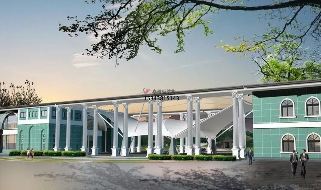 膜結(jié)構(gòu)大門作為建筑或景區(qū)入口,用來遮風(fēng)擋雨,也是景區(qū)的臉面,是景區(qū)神韻的表達,不僅要求其造型新穎,有創(chuàng)意,而且還要考慮建造材質(zhì)。