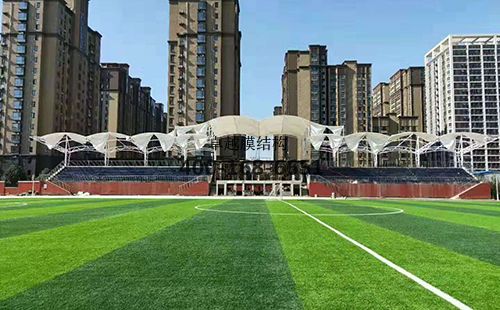 鄭州十八中膜結(jié)構(gòu)看臺/頂棚項目工程,膜材展開面積為1000平方,工程總造價******元,膜材單價***元(保密,具體請咨詢客服,想了解價格的可以參考《膜結(jié)構(gòu)價格》)