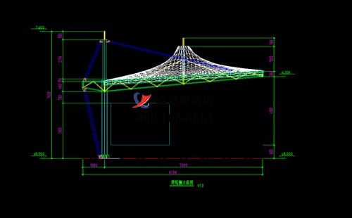 本工程膜材采用白色高端國產(chǎn)星益達(dá)PVDF高自潔環(huán)保建筑膜材和ETFE高端膜材,鋼結(jié)構(gòu)采用更好的標(biāo)準(zhǔn)Q235B鋼材,表面采用酚醛底漆處理,面漆采用白色鋼結(jié)構(gòu)專用快干磁漆。