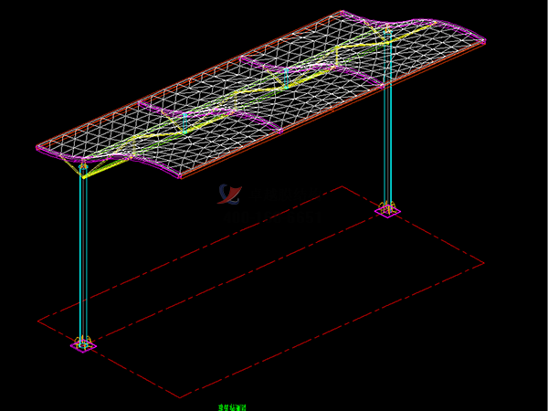 南陽(yáng)電力培訓(xùn)學(xué)校膜結(jié)構(gòu)設(shè)備車(chē)棚/罩棚/頂棚膜結(jié)構(gòu)設(shè)備罩棚/頂棚方案圖: