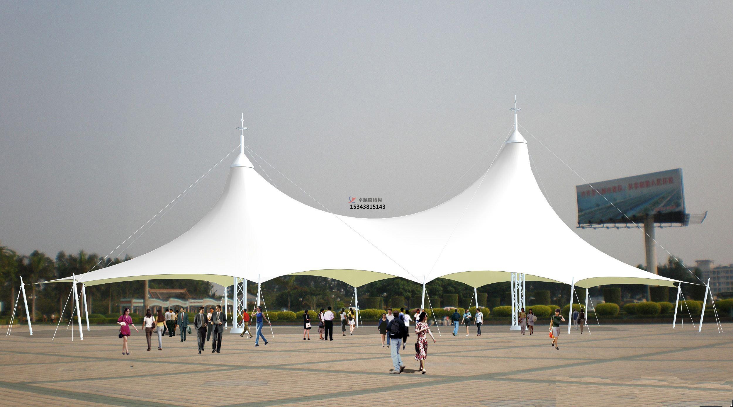 膜結(jié)構(gòu)景觀是建筑結(jié)構(gòu)中更新發(fā)展起來的一種形式,它以性能優(yōu)良的織物為材料,或是向膜內(nèi)充氣,由空氣壓力支撐膜面,或是利用柔性鋼索或剛性支撐結(jié)構(gòu)將面繃緊,從而形成具有一定剛度、能夠覆蓋大跨度空間的結(jié)構(gòu)體系。自從上世紀七十年代以來,膜結(jié)構(gòu)景觀在國外已逐漸應(yīng)用于體育建筑、商場、展覽中心、交通服務(wù)設(shè)施等大跨度建筑中。膜結(jié)構(gòu)景觀已成為結(jié)構(gòu)設(shè)計選型中的一個主要方案。