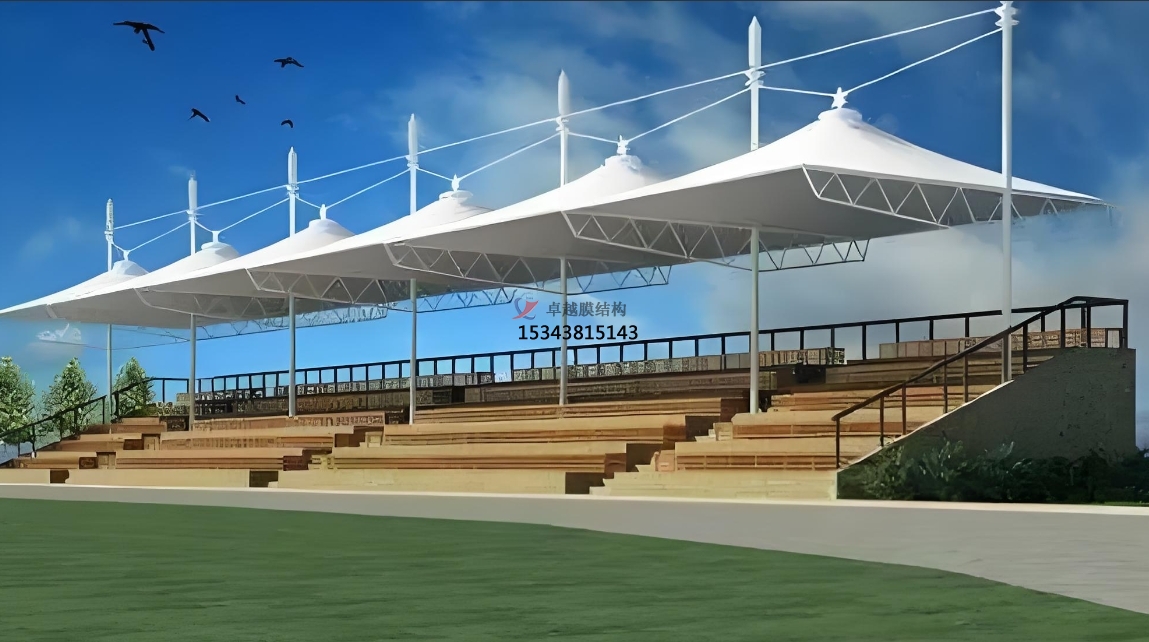 膜結構體育看臺的帽頂是整個結構的重要組成部分,它不僅能夠為觀眾提供遮陽擋雨的功能,還能增強整個結構的美觀度和視覺效果。