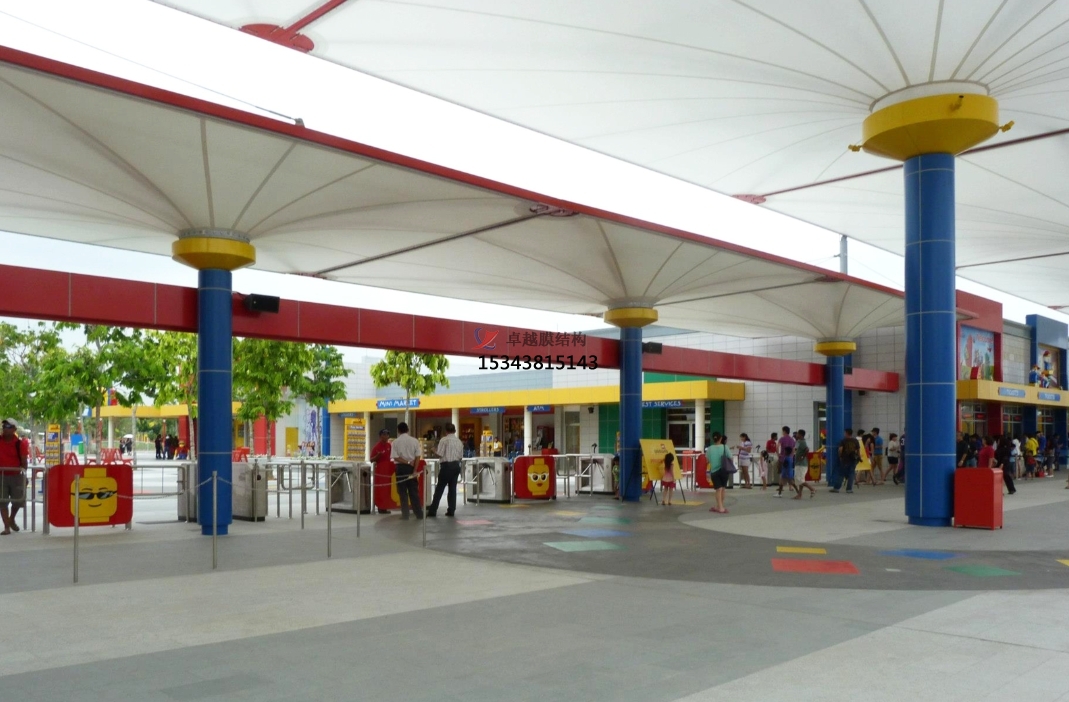 3、多功能性:除了遮陽(yáng)功能外,膜結(jié)構(gòu)遮陽(yáng)棚還可以作為陽(yáng)雨棚、涼亭、連廊等使用。其構(gòu)思獨(dú)特、因地制宜的設(shè)計(jì),使得遮陽(yáng)棚在賦予景觀小品藝術(shù)化的同時(shí),也將功能實(shí)用性融入其中,提升了游樂(lè)場(chǎng)的整體品質(zhì)。