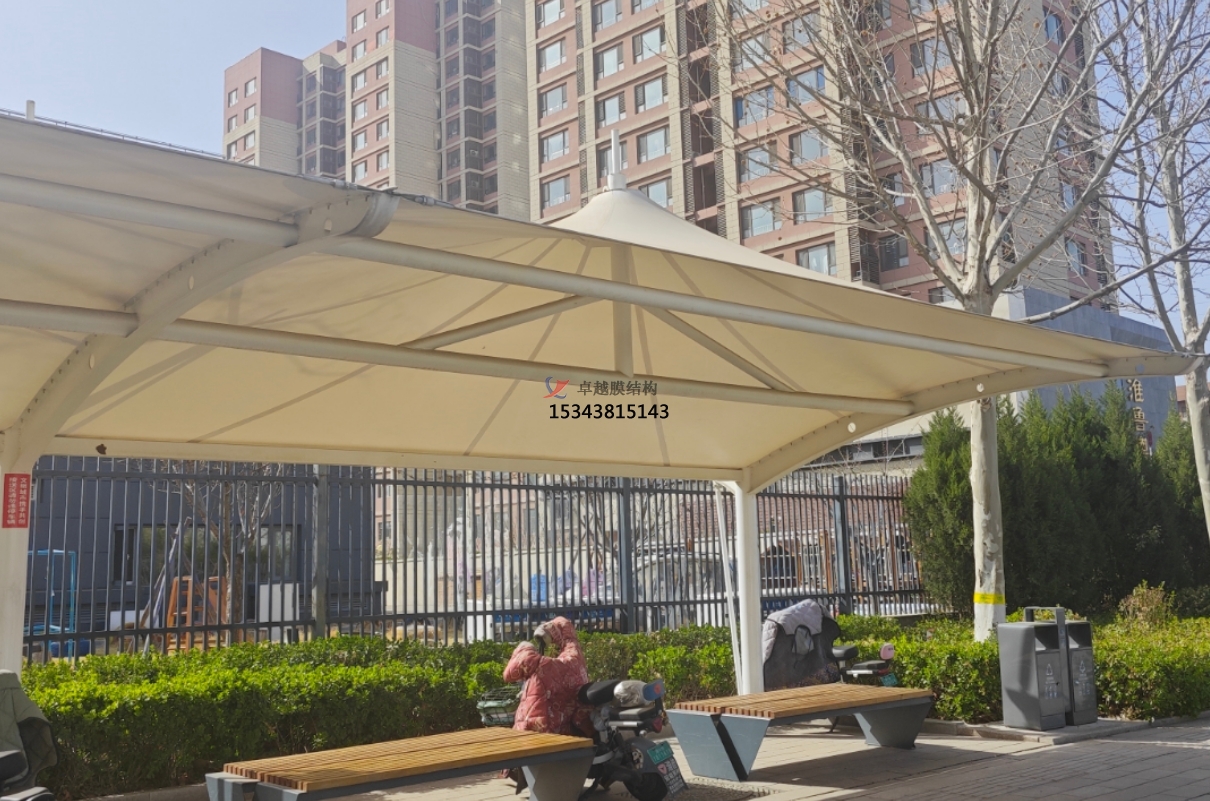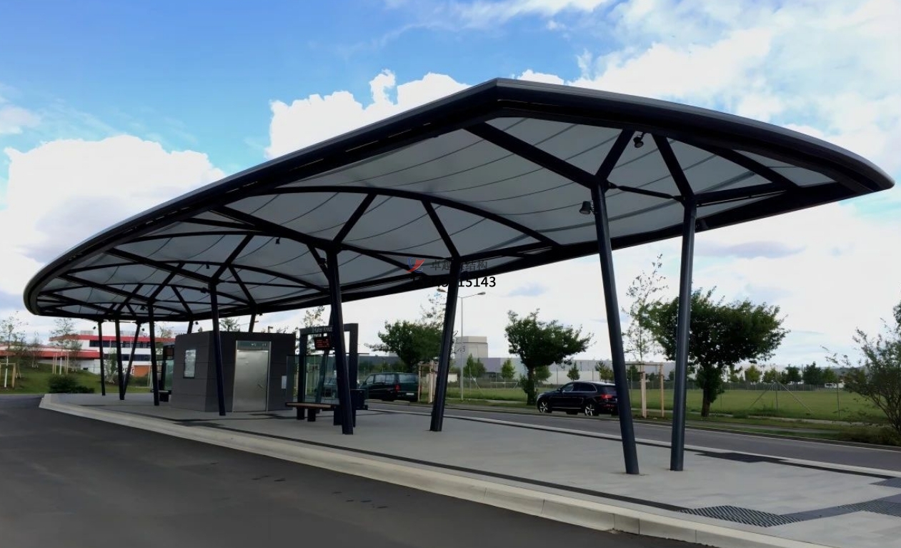 公共交通樞紐:在公交站臺、地鐵站等地方,膜結(jié)構(gòu)車棚為乘客提供了遮風(fēng)擋雨的候車空間,其通透的設(shè)計還能保證良好的視野,方便乘客觀察車輛的到來。