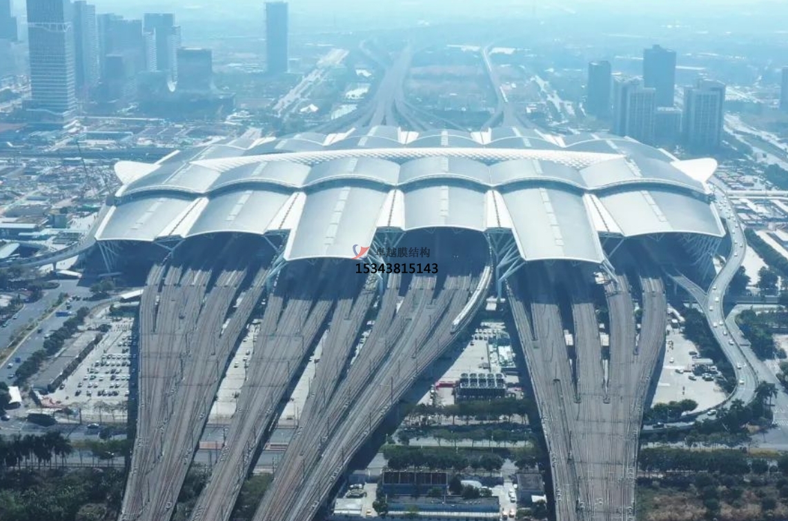 結(jié)構(gòu)輕盈:膜材料自重輕,配合高強度的輔助結(jié)構(gòu),如鋼架、鋼索等,能夠輕松覆蓋大跨度空間,滿足高鐵站對空間的需求。