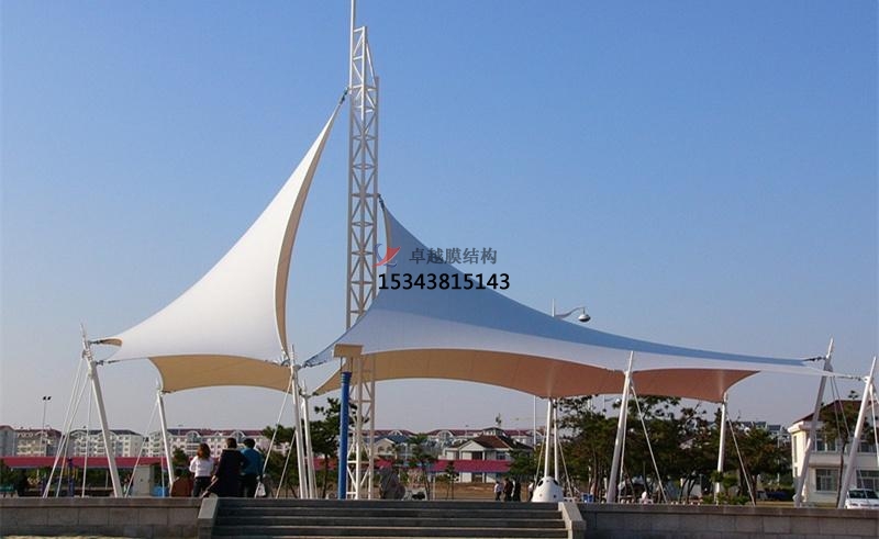 因為膜材料具有透光性,實際結(jié)構(gòu)中可以清楚地看見焊縫,所以裁剪縫的布置一定要規(guī)則、合理,好能形成一些漂亮的圖案以增加結(jié)構(gòu)的美感。如果膜表面設(shè)置有壓索或脊索, 那么好使裁剪縫與壓索或脊索重合,使索不至于打亂焊縫的圖案布置。