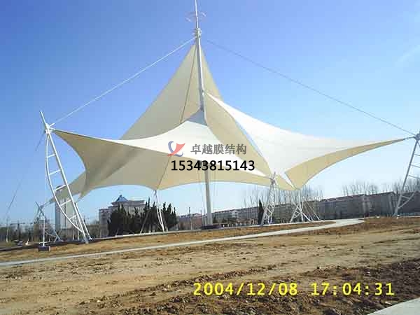 2、一個城市的中心區(qū)反映一個城市的地理風貌和民族風情,同時,也是一個城市文化發(fā)展程度的標志。而景觀設計要求其具有廣泛的可讀性、雅俗共賞,既有超凡脫俗的藝術價值,又能使大眾喜聞樂見與大眾息息相通。張拉膜以其輕盈飄逸的造型、柔美并帶有力量的曲線和大跨度和大空間的鮮明個性和標識性,應用于城市小品設計中。