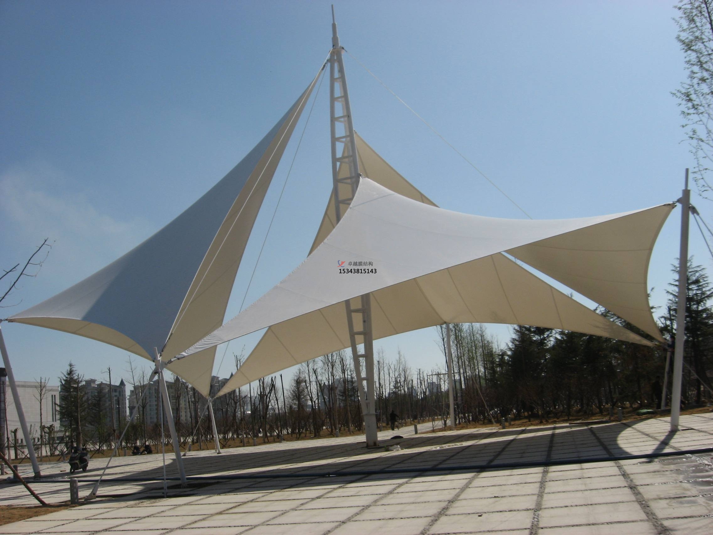 項(xiàng)目結(jié)構(gòu)形式:四周軟邊骨架式張拉膜結(jié)構(gòu)景觀小品