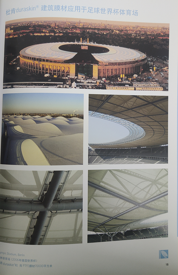 5、杜肯是全世界好的既生產(chǎn)PVC膜材又生產(chǎn)PTFE膜材的企業(yè)。