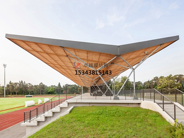 用于膜結(jié)構(gòu)中的高強(qiáng)度柔韌性薄膜稱為膜材,它是膜結(jié)構(gòu)工程中更重要的組成部分,作用與鋼筋、混凝土、輕質(zhì)板材上是等同的,在膜結(jié)構(gòu)建筑中既是起圍護(hù)作用的建筑材料,又是張拉結(jié)構(gòu)體系中的受力材料。《建筑設(shè)計(jì)防火規(guī)范》及《高層民用建筑防火設(shè)計(jì)規(guī)范》中對(duì)建筑物各構(gòu)件的燃燒性能和耐火極限都有明確的規(guī)定。目前膜結(jié)構(gòu)建筑中使用的膜材通常有兩類,一類是以玻璃纖維織物為基材,涂覆聚四氟乙烯(PTFE)等樹脂材料,燃燒性能可達(dá)到A 級(jí);另一類是以尼龍織物為基材,涂覆PVC 及其他樹脂材料,燃燒等級(jí)可以達(dá)到B1 級(jí)。