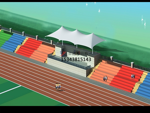 看臺膜結(jié)構(gòu)是用高強度柔性薄膜材料經(jīng)受其它材料的拉壓作用而形成的穩(wěn)定曲面,能承受一定外荷載的空間結(jié)構(gòu)形式。其造型自由、輕巧、柔美,充滿力量感,阻燃、制作簡易、安裝快捷、節(jié)能、易于、使用安全等優(yōu)點,因而使它在世界各地受到廣泛應用。