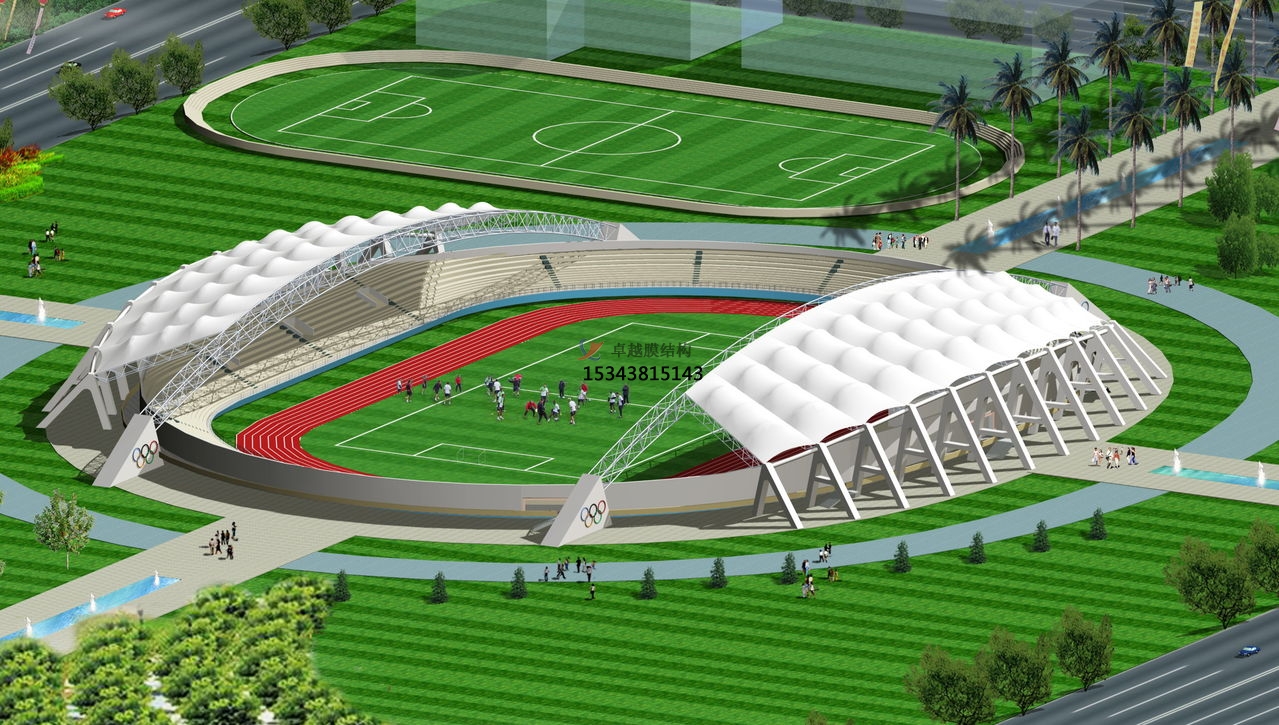 張拉膜看臺主要用于各類地方體育場主席臺雨棚,各類學(xué)校體育場看臺雨棚遮蓋,我公司是國內(nèi)較早從事大懸挑張拉膜結(jié)構(gòu)看臺設(shè)計施工的專業(yè)廠家,下面介紹一下我們在汝陽縣周邊縣市完工的一些張拉膜看臺設(shè)計施工案例,我公司先后在汝陽縣周邊承接了汝陽一高膜結(jié)構(gòu)看臺雨篷/主席臺/舞臺安裝雨棚、汝陽縣外國語實驗中學(xué)張拉膜張拉膜看臺罩棚、汝陽縣實驗高中張拉膜看臺遮陽棚等設(shè)計施工項目,簡介如下: