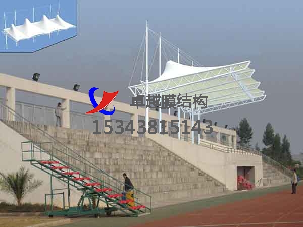 張拉膜看臺主要用于各類地方體育場主席臺雨棚,各類學(xué)校體育場看臺雨棚遮蓋,我公司是國內(nèi)較早從事大懸挑張拉膜結(jié)構(gòu)看臺設(shè)計施工的專業(yè)廠家,下面介紹一下我們在泰州市周邊縣市完工的一些張拉膜看臺設(shè)計施工案例,我公司先后在泰州周邊承接了泰州職業(yè)技術(shù)學(xué)院張拉膜看臺雨棚、江蘇農(nóng)牧科技職業(yè)學(xué)院張拉膜看臺罩棚、常州大學(xué)懷德學(xué)院張拉膜看臺遮陽棚等設(shè)計施工項(xiàng)目,簡介如下: