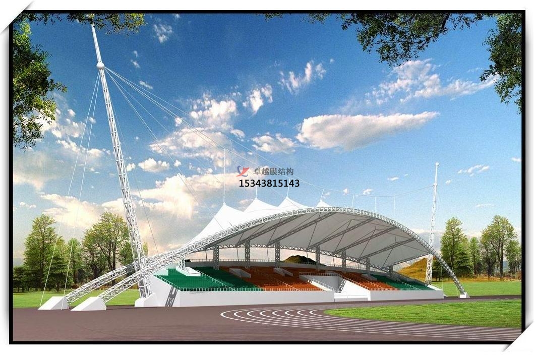 看臺膜結(jié)構(gòu)的應(yīng)用場景較為廣泛,常見于體育場館、學(xué)??磁_和景觀融合中。體育場館如德國慕尼黑安聯(lián)競技場(Allianz Arena)以ETFE膜營造動態(tài)光影效果,卡塔爾體育場結(jié)合鋼索桅桿實現(xiàn)無柱大空間;學(xué)??磁_如內(nèi)蒙古科爾沁左翼后旗實驗學(xué)校、咸陽中學(xué)等項目采用膜結(jié)構(gòu)遮陽棚,兼顧耐久性與審美需求;景觀融合如泰安汶河景區(qū)船帆膜結(jié)構(gòu)、鄂爾多斯西山公園張拉膜,將功能性與自然景觀有機統(tǒng)一。膜結(jié)構(gòu)看臺通過材料創(chuàng)新與精密工程,實現(xiàn)了功能、美學(xué)與經(jīng)濟的平衡,正逐步成為現(xiàn)代體育及公共設(shè)施的主流選擇。