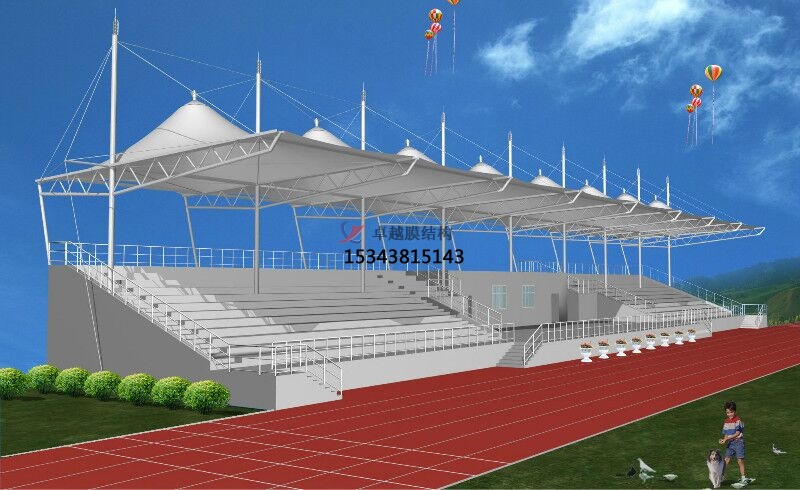 張拉膜看臺(tái)主要用于各類地方體育場(chǎng)主席臺(tái)雨棚,各類學(xué)校體育場(chǎng)看臺(tái)雨棚遮蓋,我公司是國內(nèi)較早從事大懸挑張拉膜結(jié)構(gòu)看臺(tái)設(shè)計(jì)施工的專業(yè)廠家,下面介紹一下我們?cè)诒本┦兄苓吙h市完工的一些張拉膜看臺(tái)設(shè)計(jì)施工案例,我公司先后在北京周邊承接了北京市第八中學(xué)張拉膜看臺(tái)雨棚、北京市第四中學(xué)張拉膜張拉膜看臺(tái)罩棚、北京中學(xué)張拉膜看臺(tái)遮陽棚等設(shè)計(jì)施工項(xiàng)目,簡介如下: