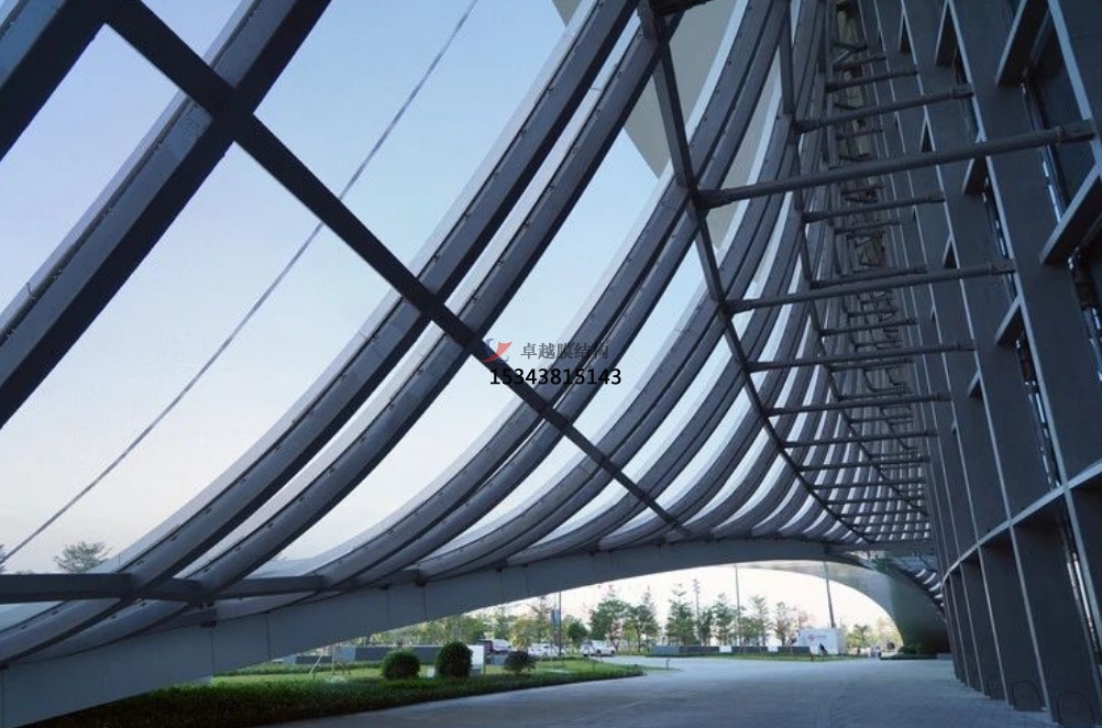單層 ETFE 結構設計強度相對較低,適用于跨度較小的建筑結構。常見的應用場景是設置于桁架弦桿之間,形成采光帶。這種結構形式能夠充分利用 ETFE 膜材的透光性,為建筑內(nèi)部引入充足的自然光線。同時,通過將 ETFE 與 PVC/PTFE 等不同材質(zhì)的膜材組合使用,可以產(chǎn)生更為豐富的視覺效果,滿足建筑美學的需求。例如,在一些商業(yè)建筑的中庭設計中,采用單層 ETFE 采光帶,搭配周圍的 PVC 膜材裝飾,營造出獨特的空間氛圍。然而,由于其強度限制,單層 ETFE 結構在大跨度或高荷載的情況下可能無法滿足設計要求。