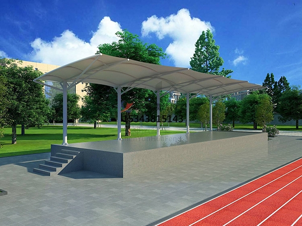 以膜材、鋼索及支柱構(gòu)成,利用鋼索與支柱在膜材中導(dǎo)入張力以達(dá)安 定的形式。除了可實(shí)踐具創(chuàng)意,創(chuàng)新且美觀的造型外,也是更能展現(xiàn)膜結(jié) 構(gòu)精神的構(gòu)造形式. 近年來,大型跨距空間也多采用以鋼索與壓縮材構(gòu)成鋼索網(wǎng)來支撐上部膜材的形式。因施工精度要求]高,結(jié)構(gòu)性能強(qiáng),且具豐 富的表現(xiàn)力,所以造價(jià)略高于骨架式膜結(jié)構(gòu)。