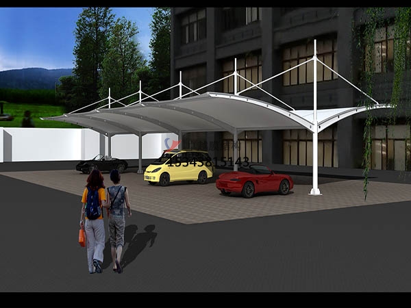 經(jīng)濟(jì)性:由于膜材料具有一定的透光率,可以減少白天的照明強(qiáng)度和時間,并且可以很好的節(jié)能。同時,夜間彩燈透射形成的絢麗停車棚也能取得良好的廣告效益。