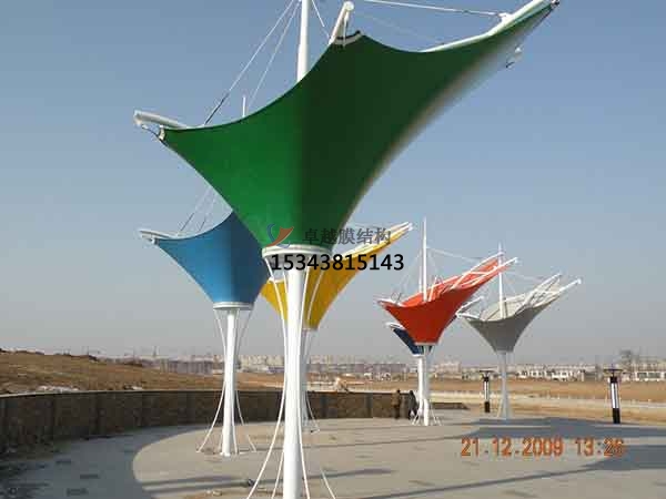 膜結(jié)構(gòu)(Membrane)是20世紀中期發(fā)展起來的一種新型建筑結(jié)構(gòu)形式,膜結(jié)構(gòu)是由多種高強薄膜材料及加強構(gòu)件(鋼架、鋼柱或鋼索)通過一定方式使其內(nèi)部產(chǎn)生一定的預張應(yīng)力以形成某種空間形狀,作為覆蓋結(jié)構(gòu),并能承受一定的外荷載作用的一種空間結(jié)構(gòu)形式。泰信膜結(jié)構(gòu)在我們的身邊用途非常廣泛,比如車棚、看臺、景觀等。膜結(jié)構(gòu)作為一種新型的建筑結(jié)構(gòu)形式,那么膜結(jié)構(gòu)的“膜”是一種什么材料呢?