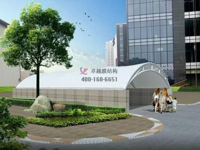 信陽膜結構車庫入口拉膜案例位于河南省信陽市,該建筑為一座兩層的地下車庫入口。由于地下車庫入口需要有良好的遮陽效果和通風性,同時要滿足美觀和實用性的要求,因此設計師選擇了膜結構方案。