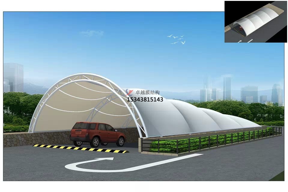 地下車庫膜結構主要是取代地下車庫出入口的一些傳統(tǒng)雨棚,有很多優(yōu)點: