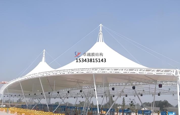 膜結(jié)構(gòu)出入口類型:地下車庫膜結(jié)構(gòu)出入口,大門膜結(jié)構(gòu)出入口,停車場(chǎng)出入口膜結(jié)構(gòu)收費(fèi)亭。地下車庫膜結(jié)構(gòu)出入口的功能是替代傳統(tǒng)雨棚,遮陽擋雨,提升車庫實(shí)用性。優(yōu)點(diǎn)則是可拆裝重復(fù)使用(綠色環(huán)保)、自潔性強(qiáng)(雨水沖洗即可清潔)、抗老化(壽命 15 年以上),主要應(yīng)用場(chǎng)景為住宅、商場(chǎng)、交通樞紐的地下車庫。大門膜結(jié)構(gòu)出入口的功能是兼顧遮陽防雨與景觀裝飾,提升建筑形象。優(yōu)點(diǎn)是造型新穎(如流線型、雕塑感設(shè)計(jì))、透光性好(減少照明能耗)、自重輕(抗震性強(qiáng))。應(yīng)用場(chǎng)景通常是小區(qū)、景區(qū)、學(xué)校、商業(yè)綜合體的主入口。停車場(chǎng)出入口膜結(jié)構(gòu)收費(fèi)亭的功能是作為收費(fèi)管理設(shè)施,兼具功能性與美觀性,優(yōu)點(diǎn)則是施工快捷、大跨度無柱設(shè)計(jì)、抗風(fēng)抗雪能力強(qiáng)。應(yīng)用場(chǎng)景通常是公路收費(fèi)站、景區(qū)停車場(chǎng)、物流園區(qū)。