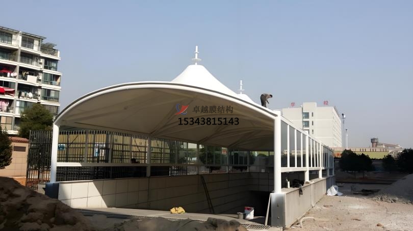 膜結(jié)構(gòu)出入口是一種以高強(qiáng)度膜材料與支撐結(jié)構(gòu)(鋼索、鋼架等)結(jié)合的建筑形式,具有輕盈、美觀、耐用等特點(diǎn),廣泛應(yīng)用于各種場(chǎng)所的建筑形式,主要用于提供遮陽、遮雨的功能,同時(shí)具有較高的觀賞性和藝術(shù)感。