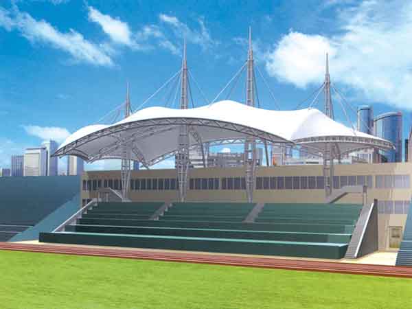 張拉膜看臺(tái)主要用于各類地方體育場(chǎng)主席臺(tái)雨棚,各類學(xué)校體育場(chǎng)看臺(tái)雨棚遮蓋,我公司是國(guó)內(nèi)較早從事大懸挑張拉膜結(jié)構(gòu)看臺(tái)設(shè)計(jì)施工的專業(yè)廠家,下面介紹一下我們?cè)谂_(tái)州市周邊縣市完工的一些張拉膜看臺(tái)設(shè)計(jì)施工案例,我公司先后在臺(tái)州周邊承接了臺(tái)州學(xué)院張拉膜看臺(tái)雨棚、臺(tái)州職業(yè)技術(shù)學(xué)院張拉膜看臺(tái)罩棚、臺(tái)州科技職業(yè)學(xué)院張拉膜看臺(tái)遮陽(yáng)棚等設(shè)計(jì)施工項(xiàng)目,簡(jiǎn)介如下: