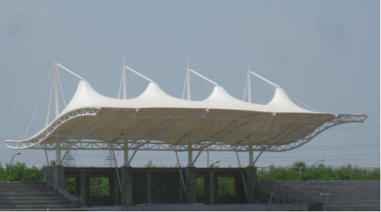 工程結(jié)構(gòu)形式:骨架式膜結(jié)構(gòu)看臺,自然排水。