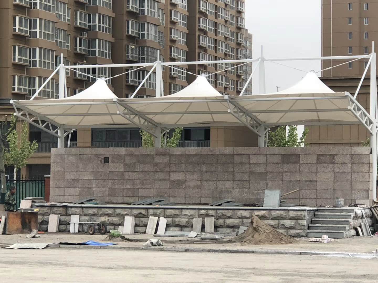 工程結(jié)構(gòu)形式:骨架式膜結(jié)構(gòu)看臺,自然排水。
