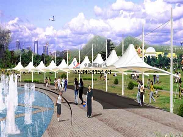 膜材料可濾除大部分紫外線,防止內(nèi)部物品褪色。其對自然光的透射率可達25%,透射光在結(jié)構(gòu)內(nèi)部產(chǎn)生均勻的漫射光,無陰影,無眩光,具有良好的顯色性,夜晚在周圍環(huán)境光和內(nèi)部照明的共同作用下,膜結(jié)構(gòu)表面發(fā)出自然柔和的光輝,令人陶醉。PTFE膜材和經(jīng)過特殊表面處理的PVC膜材具有很好的自潔性能,雨水會在其表面聚成水珠流下,使膜材表面得到自然清洗。一般膜結(jié)構(gòu)對于低于60Hz的低頻幾乎是透明的,對有特殊吸音要求的結(jié)構(gòu)可以采用具有FABRASORB裝置的膜結(jié)構(gòu),這種組合比玻璃具有更強的吸音效果。單層膜材料的保溫性能與磚墻相同,優(yōu)于玻璃。同其他材料的建筑一樣,膜建筑內(nèi)部也可以采用其他方式調(diào)節(jié)其內(nèi)部溫度。例如:內(nèi)部加掛保溫層,運用空調(diào)采暖設備等。