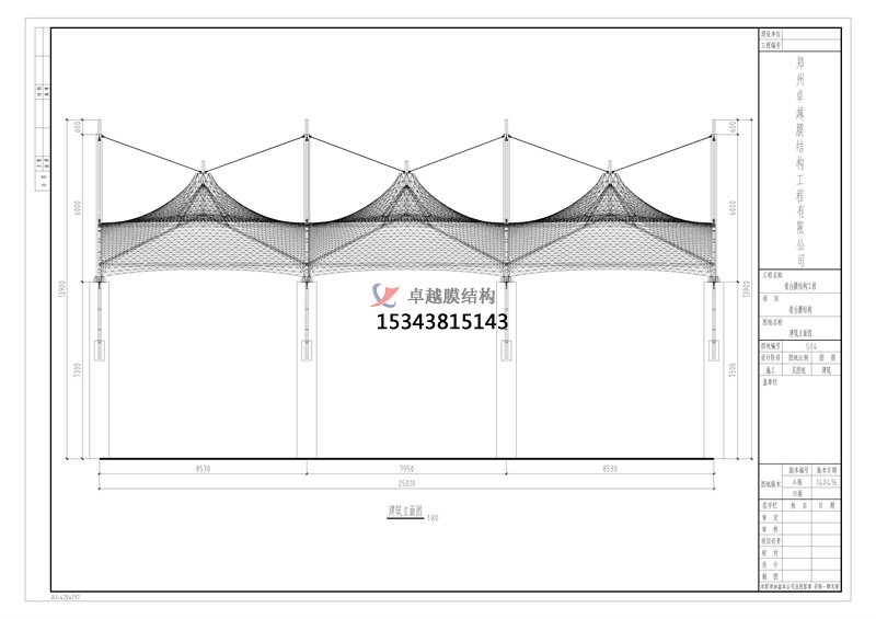 膜結(jié)構(gòu)看臺設(shè)計正立面圖。
