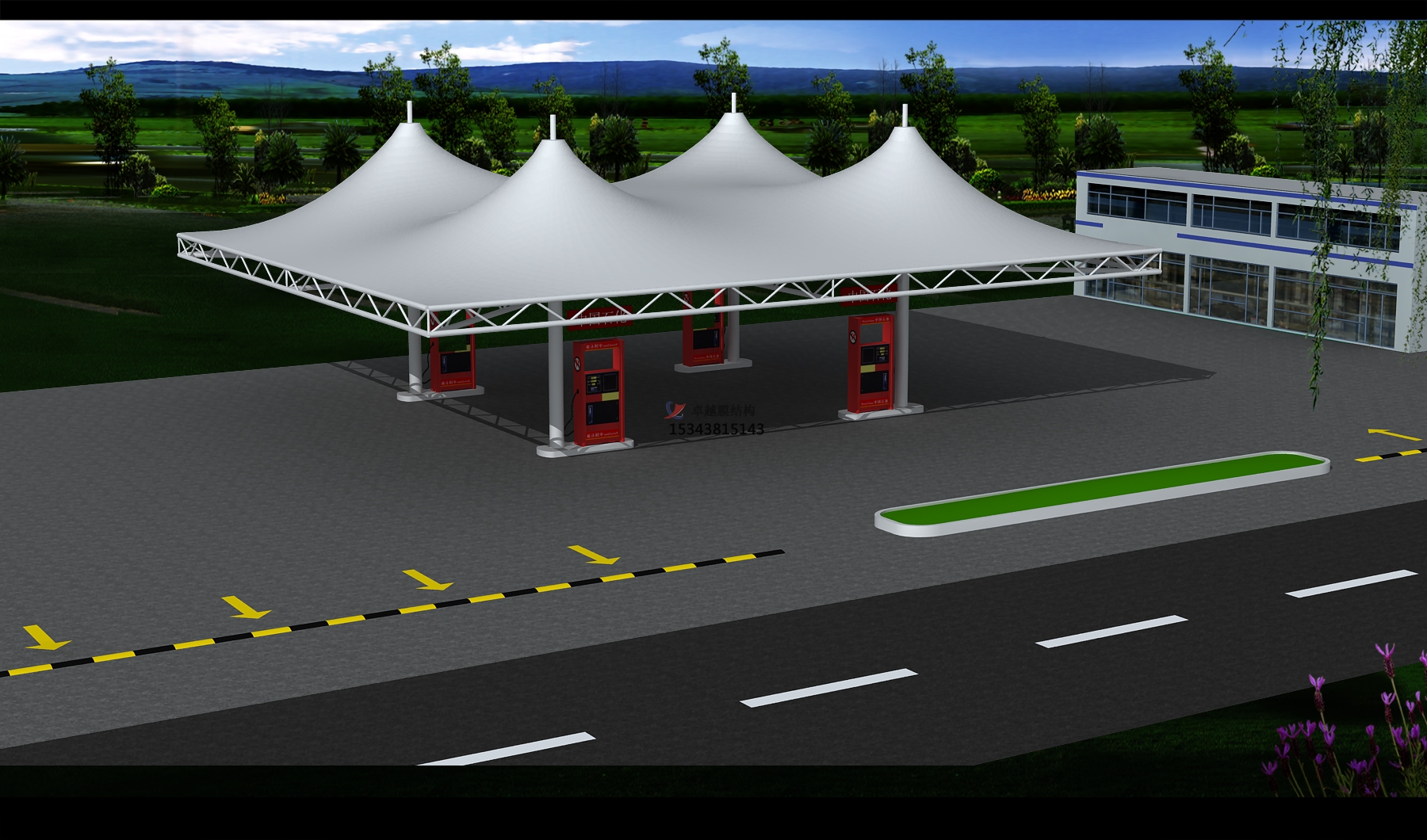膜結(jié)構(gòu)雨棚是一種全新的建筑結(jié)構(gòu)形式,它集建筑學(xué)、結(jié)構(gòu)力學(xué)、精細(xì)化工與材料科學(xué)、計(jì)算機(jī)技術(shù)等為一體,具有很高技術(shù)含量。其曲面可以隨著建筑師的設(shè)計(jì)需要任意變化,結(jié)合整體環(huán)境,建造出標(biāo)志性的形象工程。