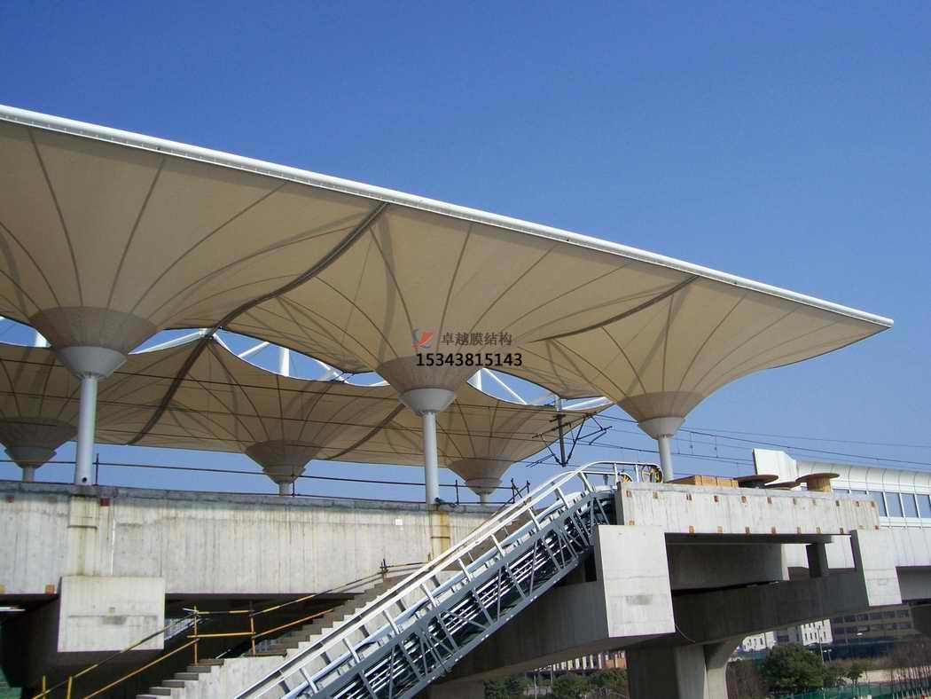 膜結(jié)構(gòu)雨棚屬于軟性材料,本身自動輕,耐高溫、抗紫外線,使用壽命長達(dá)15至20年。